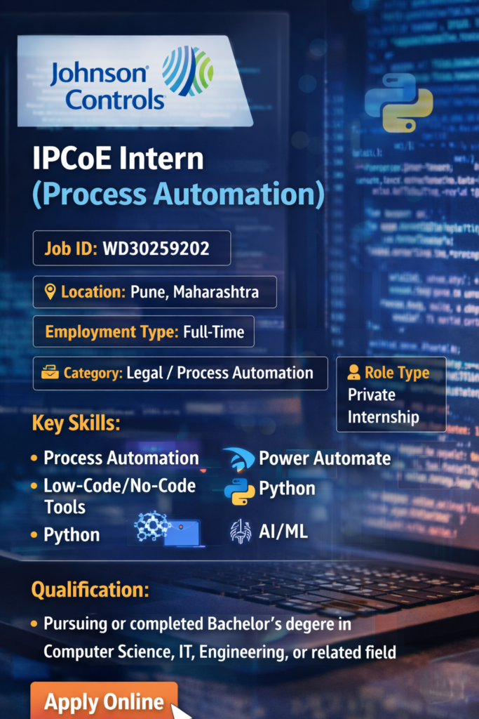 IPCoE Intern (Process Automation) 2026 – Johnson Controls January 18, 2026 IPCoE Intern (Process Automation) 2026 – Johnson Controls Read Post »
