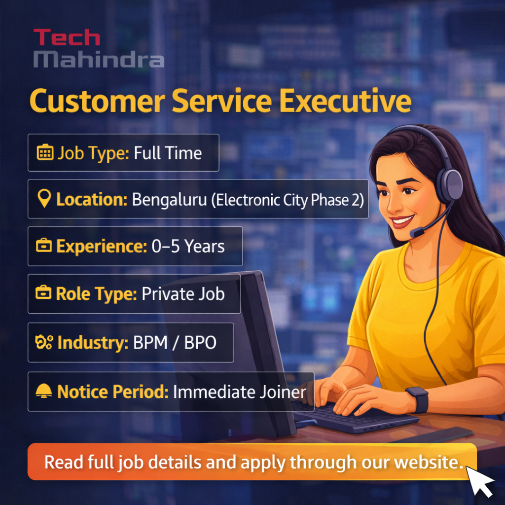 Tech Mahindra Customer Service Executive 2026 Notification January 18, 2026 Tech Mahindra Customer Service Executive 2026 Notification Read Post »