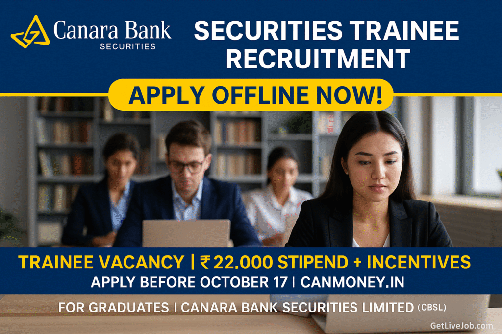 Canara Bank Securities Trainee Recruitment – Apply Offline | canmoney.in October 13, 2025 Canara Bank Securities Trainee Recruitment – Apply Offline | canmoney.in Read Post »